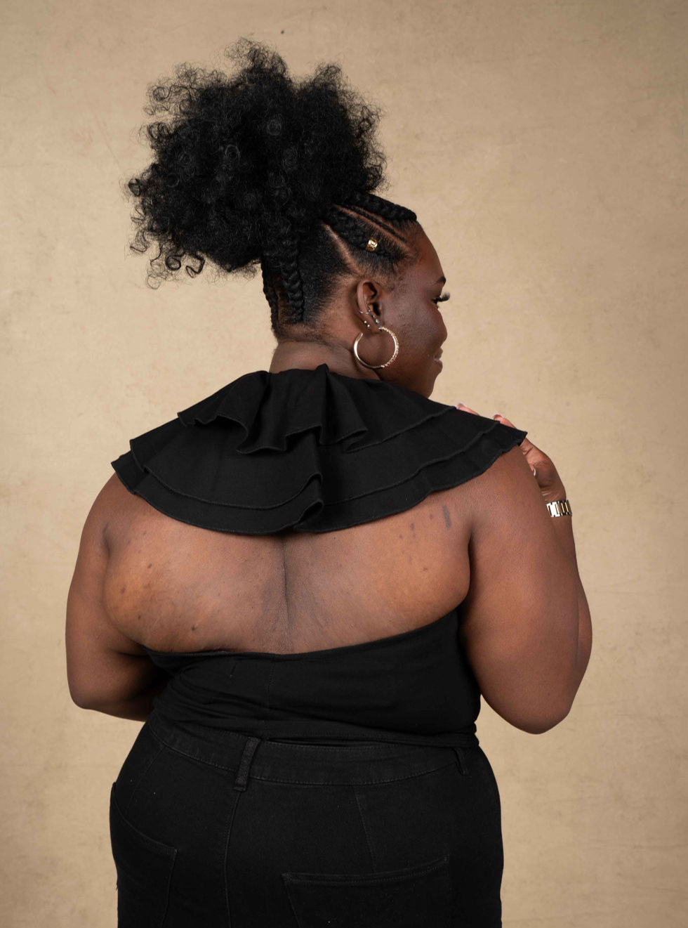 The Stella Ruffle top is that girl. She is for the girlies who love the Bebe and Evie Dress so much, they want it as a top. Keep the same back action and add this to your closet.